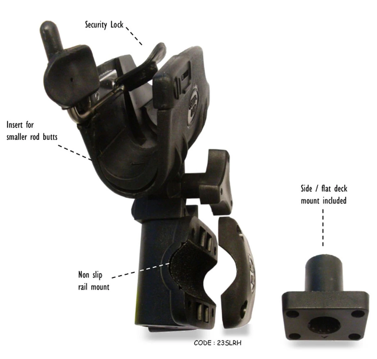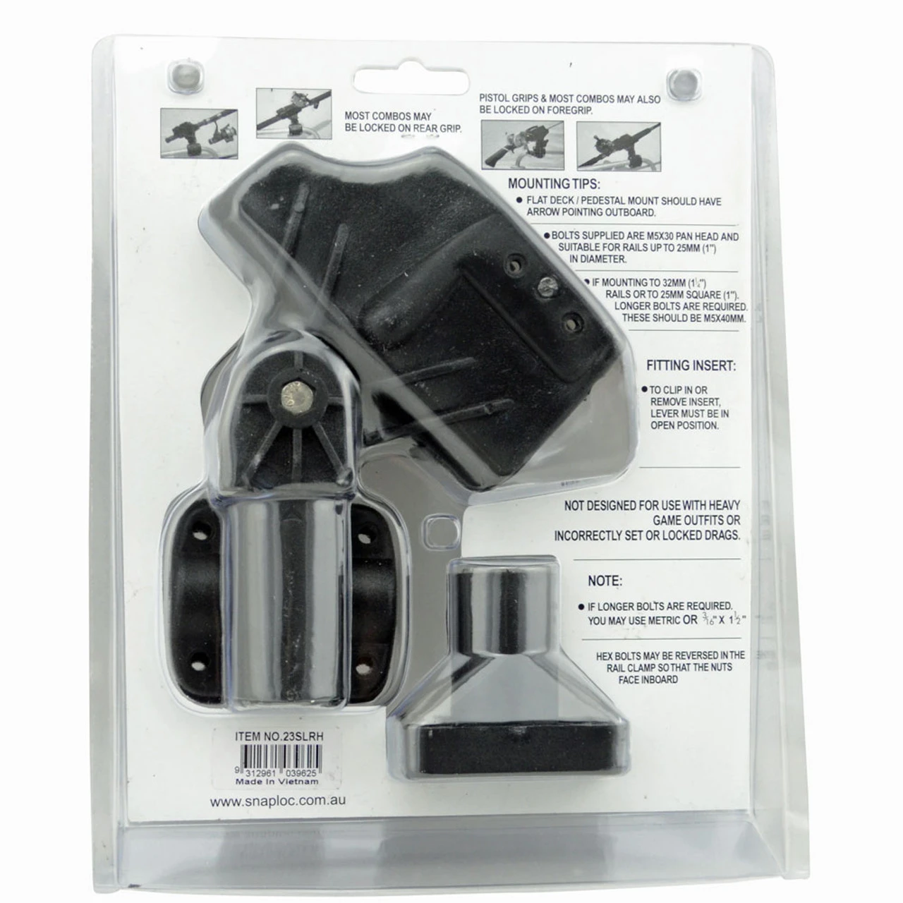 The Snap-loc rod holder comes equipped with all the components you need to mount it to most boats, including deck, gunwale and rail mounts. The heavy-duty construction handles light to medium trolling and bait fishing. It will also handle multiple rod and reel configurations.