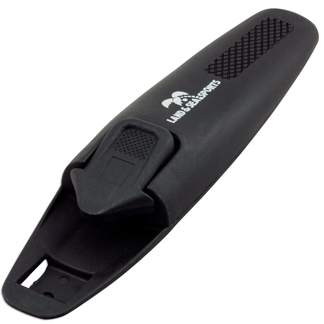 Being a multipurpose blade, the Commando dive tool features a line-cutter, flat-edge, and saw-edge on top of the highly useful hammerhead. You get four key functions in just a single tool. Land and Sea also gives you a protective sheath and rubber strap for safe storage.
