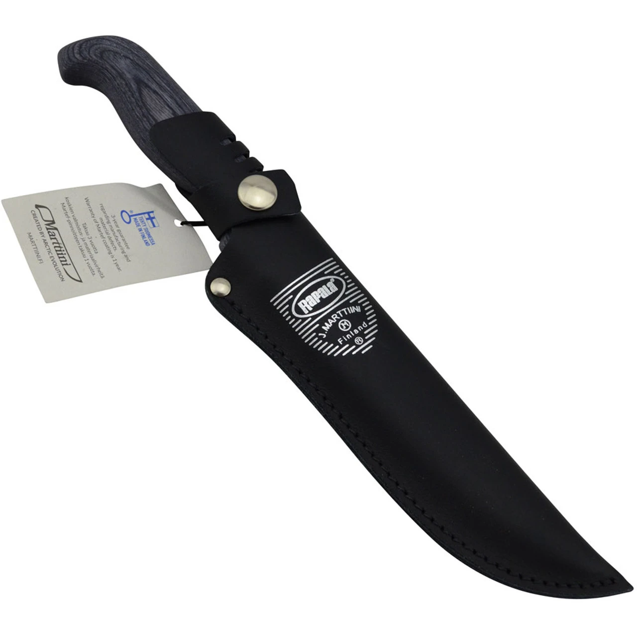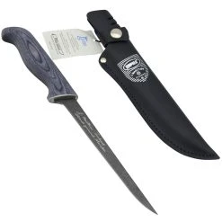Being Marttiini Knife you know that its well made and looks great the Marttiini Presentation Fillet Knife also features a laminated birch handle that is stained grey and a genuine tooled leather sheath to protect your knife.