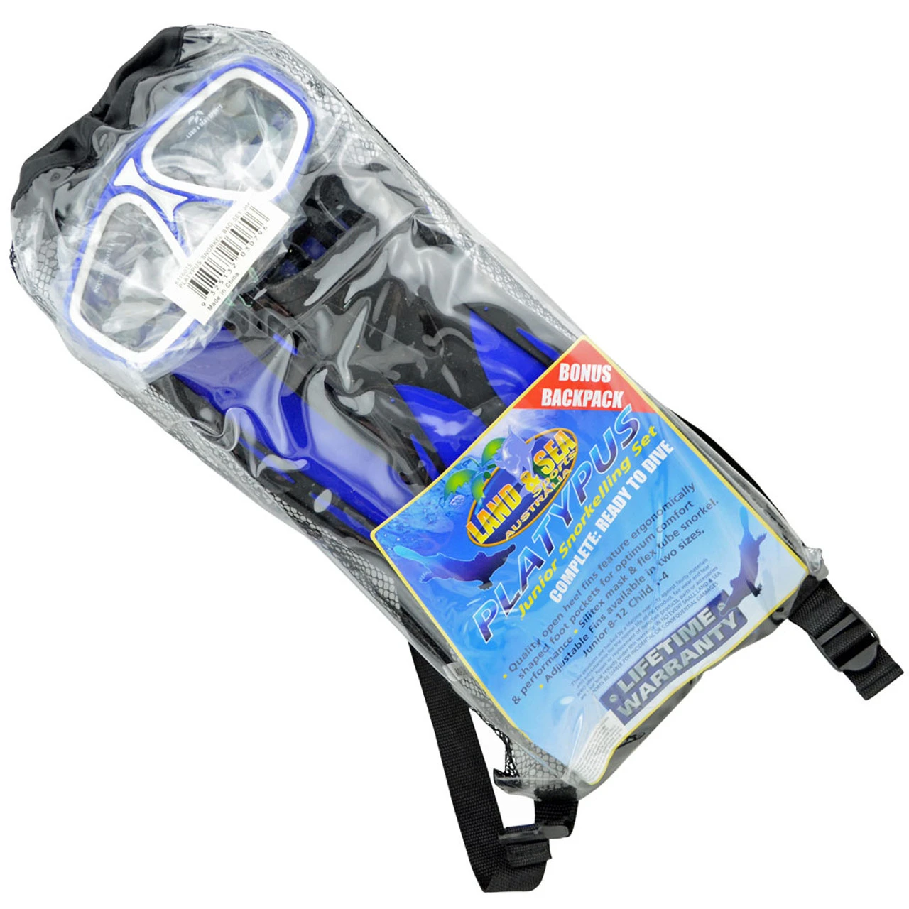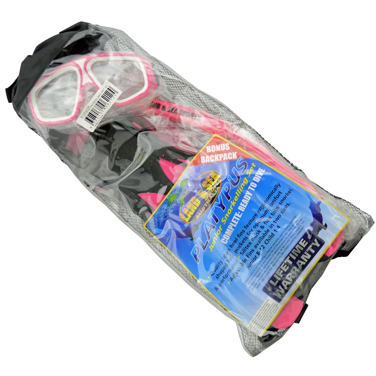 Land and Sea Platypus Pack – Kids Mask & Snorkel and flipper snorkelling package