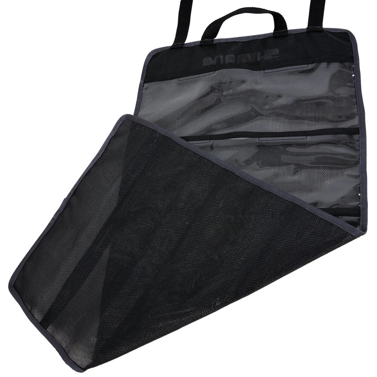 With super strong mesh and breathable fabric, the Shimano Game lure wrap is lightweight and fast drying. Stick and seal material features on each pocket keeping your lures in place. The clear plastic window allows for easy identification. The Shimano Game lure bag rolls up to a neat, easily storable and transportable package. Your lures are protected and you’re protected from the nasty hooks.