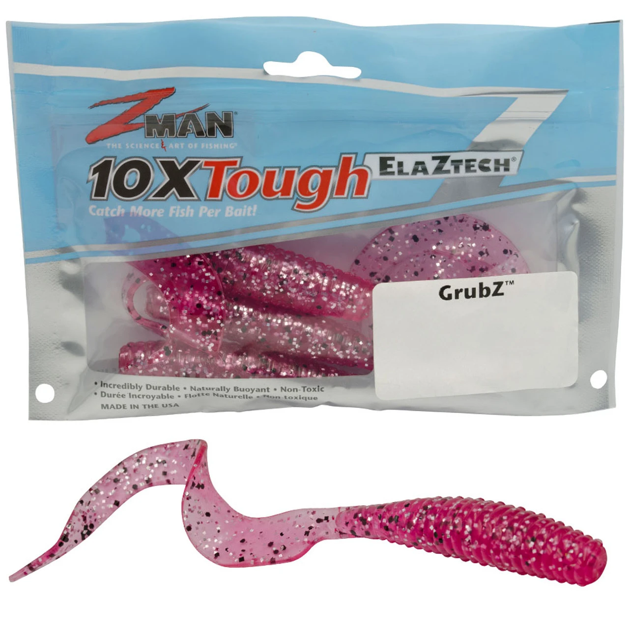 Zman 9 Inch grubz are constructed using Elaztech plastic making them one of the most durable soft plastic fishing lures on the market. In fact they claim they are up to 10 times tougher than other bands of soft plastics for sale.